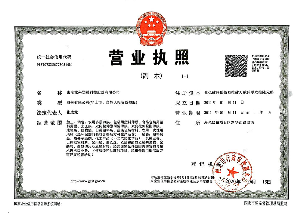 山東龍興塑膜科技股份有限公司前身為山東壽光龍興農膜有限公司組建于2011年,2018年10月重組,目前是壽光市國有控股公司、高新技術企業(yè),是專業(yè)生產(chǎn)高檔農用薄膜、工業(yè)用薄膜的企業(yè),是一家以產(chǎn)品制造為主,集科研開發(fā)、產(chǎn)品設計、技術服務于一體的綜合性企業(yè)。公司現(xiàn)有職工228人,各類工程技術人員97人,管理人員20余人,注冊資金14234.2096萬元,總資產(chǎn)102314萬元,目前是壽光市國有控股公司、高新技術企業(yè)。公司是中國塑料加工工業(yè)協(xié)會農膜專業(yè)委員會會員單位,中國復合材料工業(yè)協(xié)會會員單位,中國塑料加工工業(yè)協(xié)會雙向拉伸聚酯薄膜專業(yè)委員會會員單位...